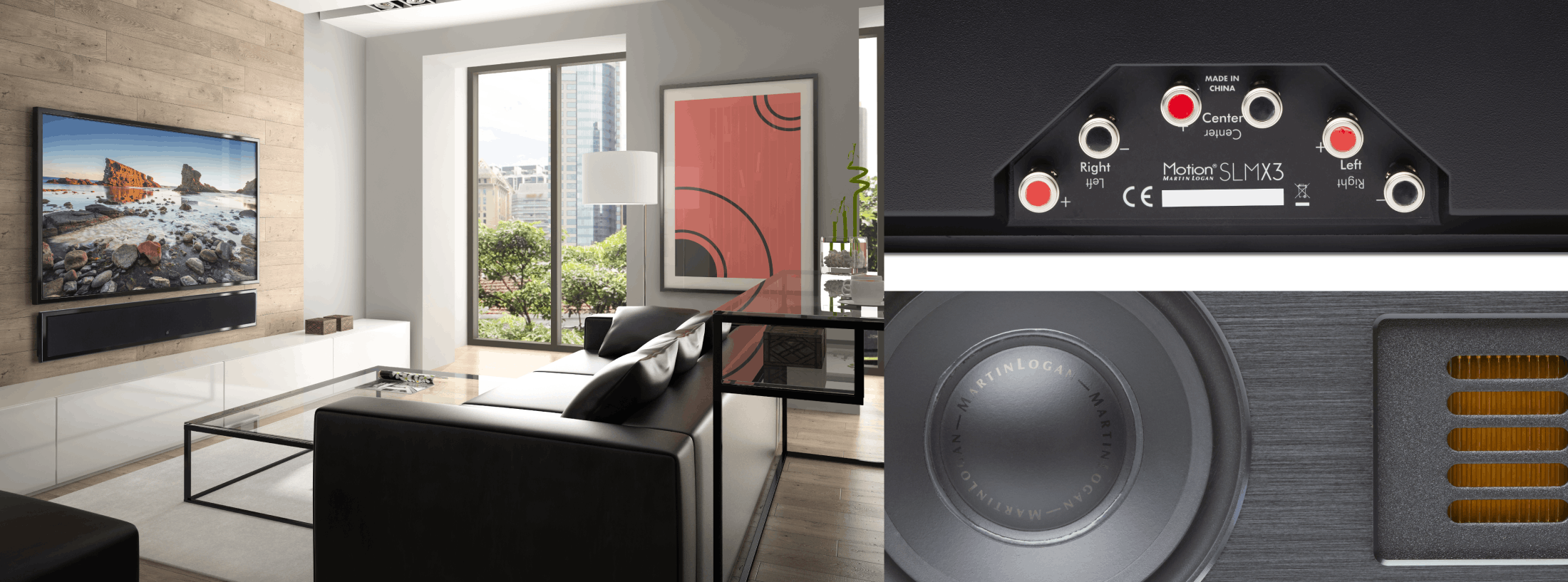 The slender Motion SLM® X3 soundbar features three advanced resolution Folded Motion tweeters, six 4-inch high-excursion fiber cone woofers for maximum controlled low-end bass extension.